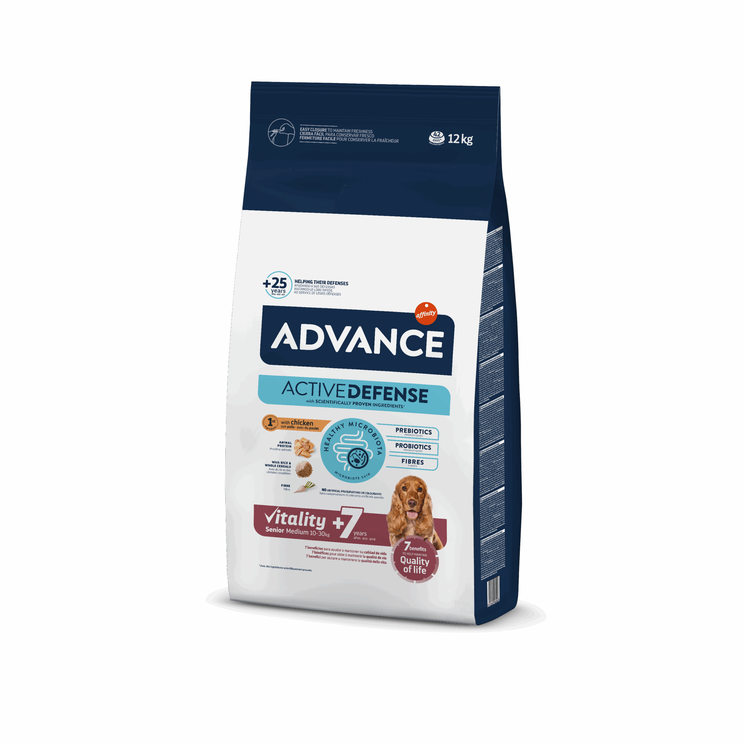 Visavertis ir subalansuotas pašaras vidutinio dydžio vyresnio amžiaus šunims.