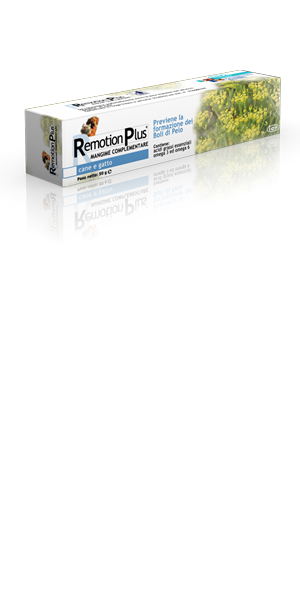 Remotion Plus šunų ir kačių pašaro papildas, padedantis išvengti plaukų kamuoliukų susidarymo ir reguliuojantis normalią žarnyno funkciją.